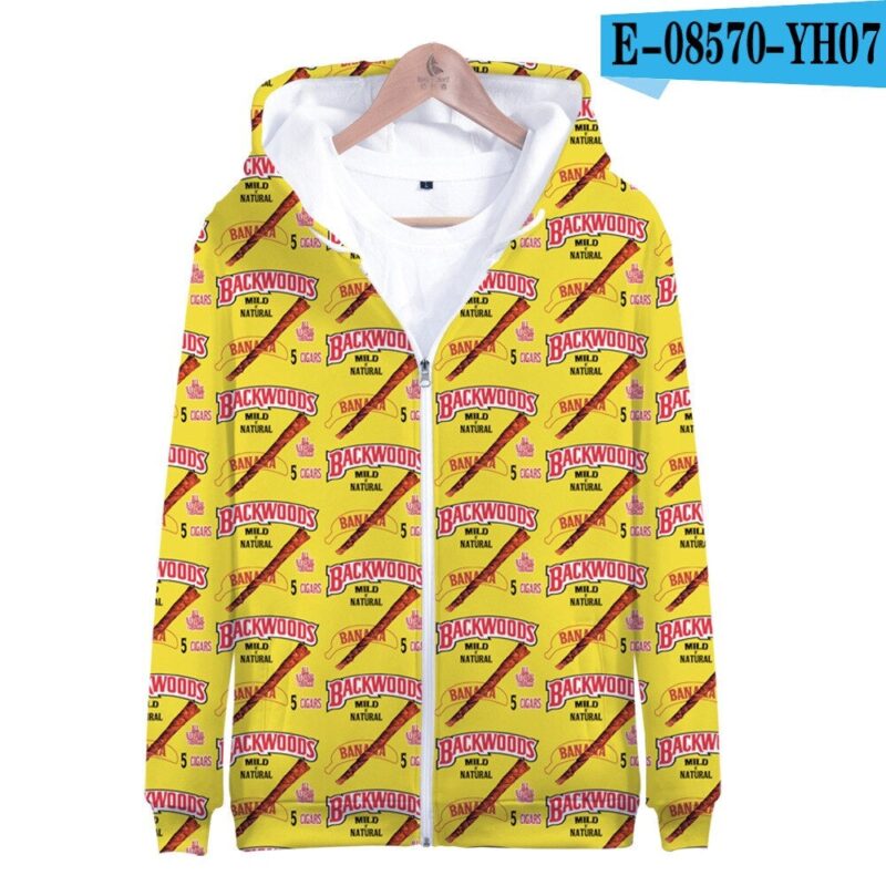 Backwoods Hooded Digital Printing Men and Women Zipper Hooded Hip Pop Sweatshirt coat