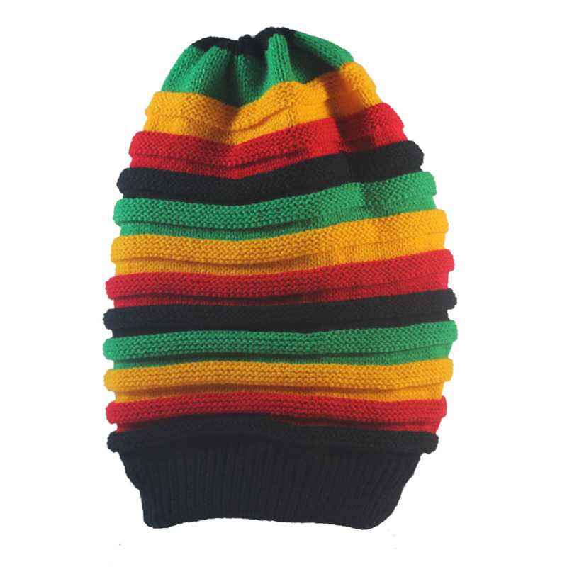 Jamaican Beanie Color Stripe Long Rainbow Knitted Pullover Hat
