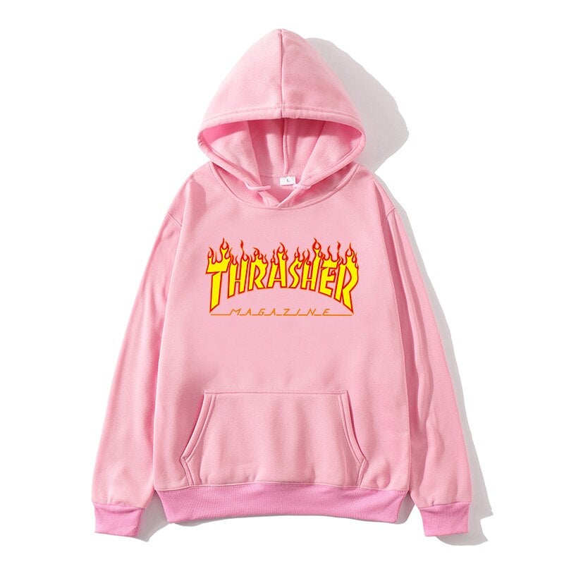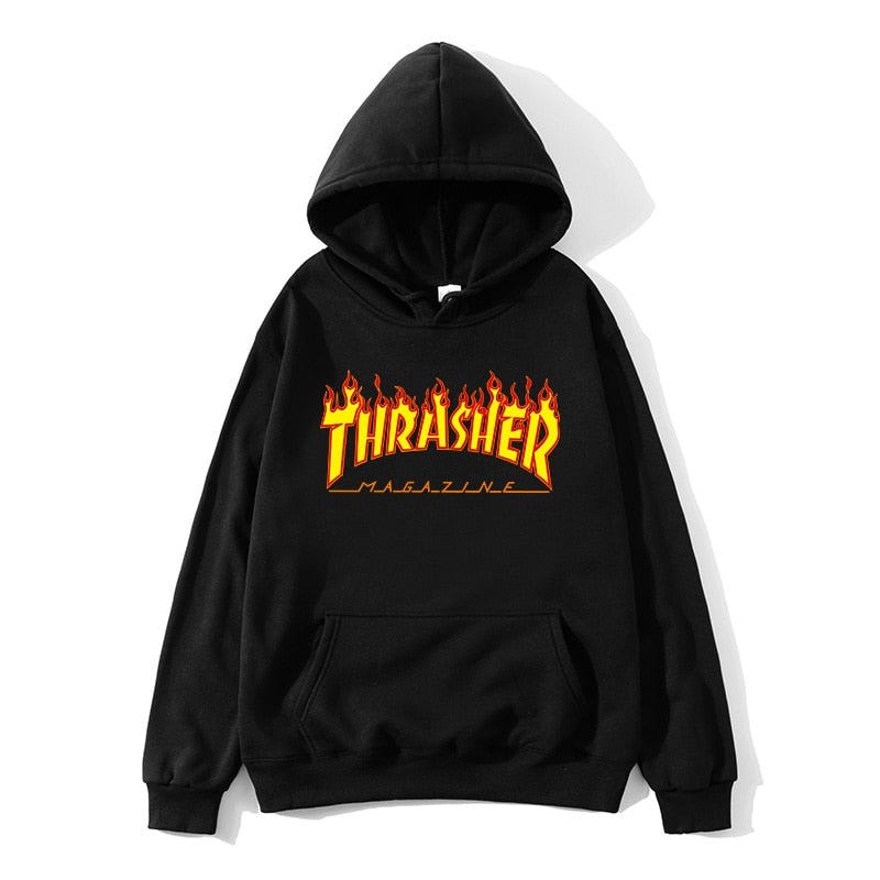 Men’s hoodies fall/winter popular pullovers yellow flame print ladies hip-hop hoodies couple sweatshirts